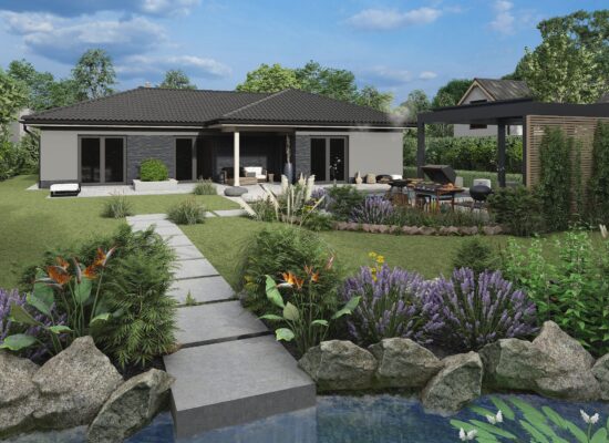 Rodinný dům RD 103 B je moderní přízemní bungalov s důmyslně navrženým dispozičním řešením 5+kk, které kombinuje prostornost, praktičnost a maximální komfort pro celou rodinu. Tento dům nabízí ideální zázemí pro pohodlný každodenní život s důrazem na funkčnost a dostatek úložných prostor.